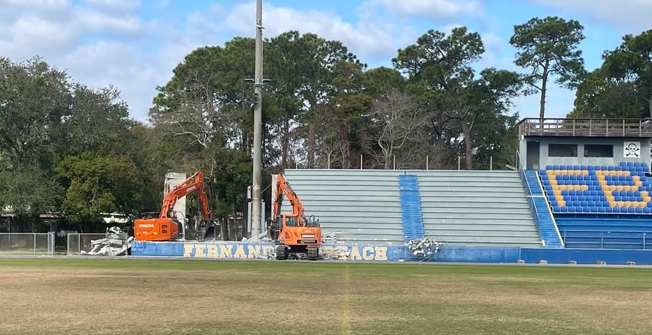 The iconic concrete bleachers at Fernandina Beach High School, FBHS, have been demolished and will be replaced with metal grandstands and a press box in time for the home opener on Aug. 21.