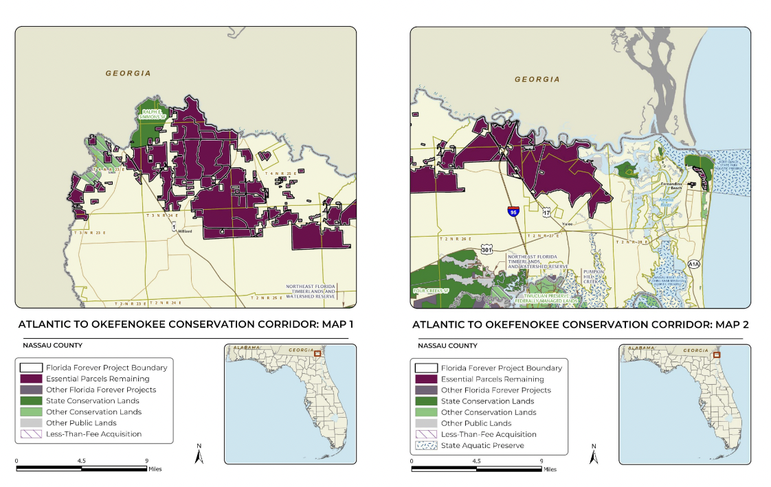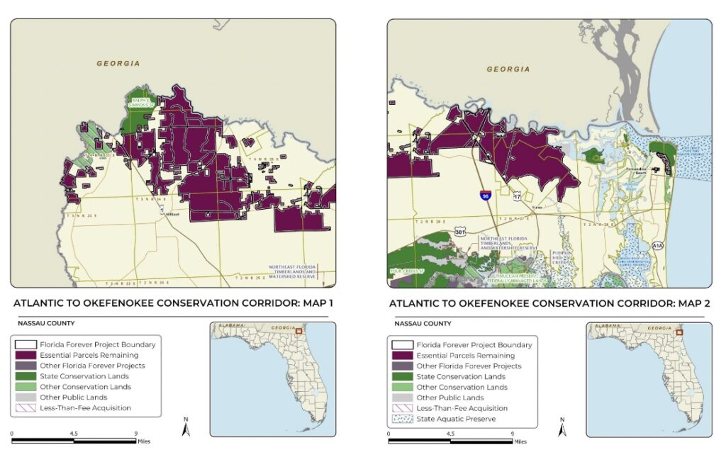 Those efforts include both a land acquisition and a conservation easement that have advanced the Atlantic to Okefenokee, or A20, conservation project — a partnership between the county, the Florida Department of Environmental Protection and regional land trusts aimed at preserving a continuous corridor of land stretching from northern Amelia Island along the St. Marys River to the Okefenokee Swamp.