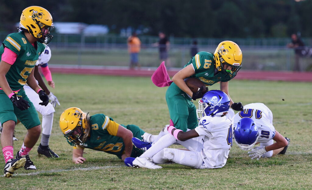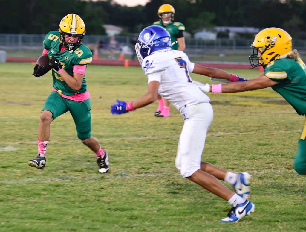 Pirate Jha’lil Jamison had two tackles and four assists, and he forced a fumble. Jakob Floyd recorded one tackle and one assist, and he returned an interception 95 yards for a score.