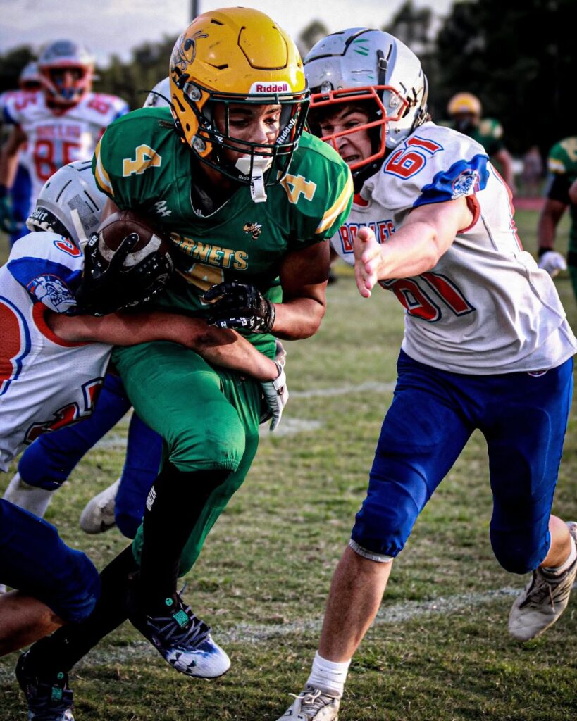 Ja’kaden Myers reeled in two catches for 150 yards, both resulting in touchdowns for the Pirates. He also had an interception. Bryce Schrader had a 63-yard TD reception, and he also intercepted a pass.