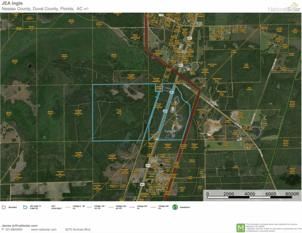 County records confirm that two emails were exchanged in January 2023 between Nassau Senior Planner Joshua Macbeth and Scrivener, who at the time represented National Solar, regarding site plans for a solar farm on the property along U.S. 301.