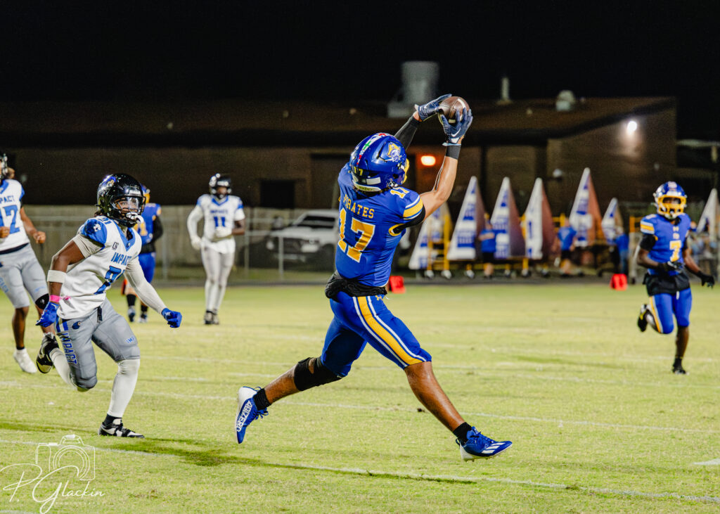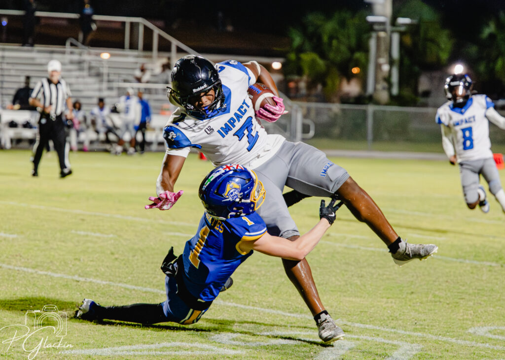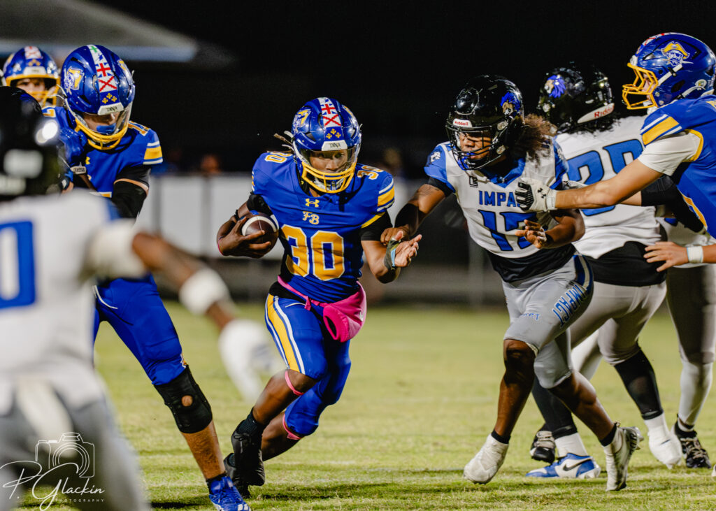 In the matchup on Friday night, Impact Christian Academy broke open a first-half stalemate with a 95-yard touchdown run in the second quarter. The Lions built on that lead in the third with a 79-yard TD run. The visitors led 14-0, before Traivon Martin punched it in from 3 yards out for the Pirates’ first score. Aydin Poe hauled in the pass from Ian Miller for the two-point conversion. FBHS cut Impact’s lead to 14-8.