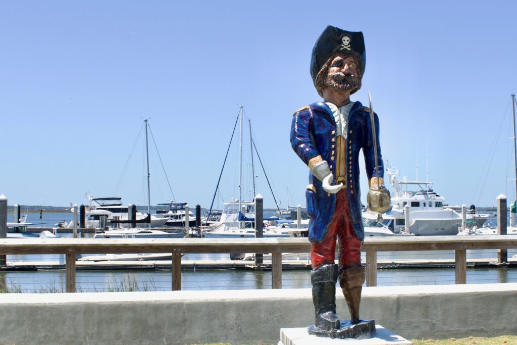 “Captain Clinch is known as Peg Leg Pete’s younger brother. Peg Leg Pete was Amelia Island’s mascot. He soon retired and went to sail the seas. Clinch is very sad that his brother is gone but he decided that he would hop in and is willing to fill in Pete’sboot on Centre Street. He wants many visitors to keep coming, to see the beauty, and history of Amelia Island.”