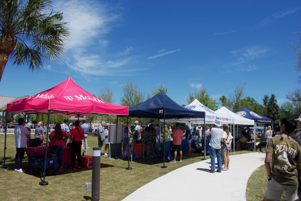 At the heart of the park, a stage and courtyard served as the focal point for the event, hosting both the opening ceremony and the afternoon’s entertainment. Nearby, tents and tables lined the walkways, where community organizations, including city departments, the Main Street program and Keep Nassau Beautiful, greeted visitors and shared information about their work. A booth hosted by T-Mobile highlighted the $50,000 “Homegrown” grant that funded the park’s children’s climbing structure, one of its most popular features.