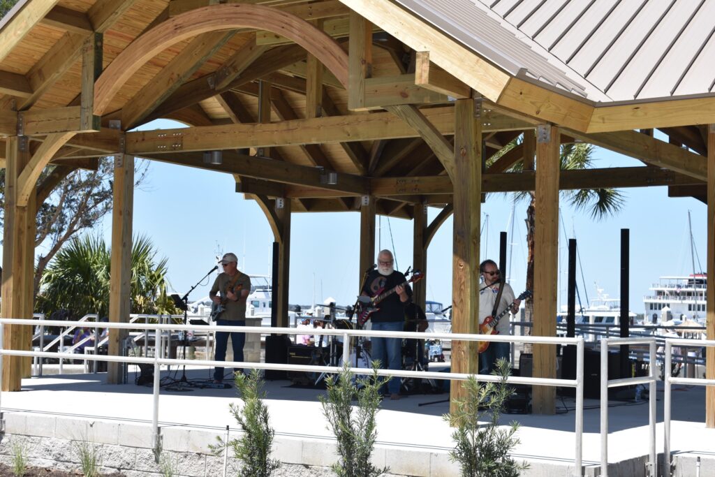 Under clear skies, the celebration began at 2 p.m. with a lively performance by the Honey Badgers, whose music set the tone for a relaxed, festive afternoon along the water. Some attendees settled into beach chairs near the park’s edge, while others wandered the grounds, taking in the newly finished space for the first time.